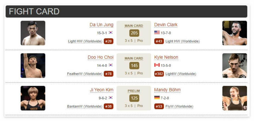 다시 한번, UFC 서울에서 미국의 데빈 클락을 잡으로 랭킹 15위 안에 들어서게 될 것인지 정다운 선수에게도 정말 중요한 기회가 될 수 있을 것 같습니다.