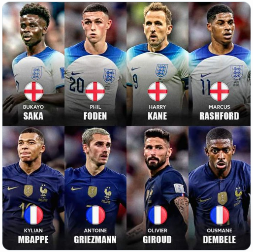 결론적으로, 잉글랜드와 프랑스의 핵심 선수인 두 선수간의 승리는 음바페로 보고 있지만, 현재까지는 잉글랜드가 프랑스보다 더 좋은 경기력을 보이고 있다는 뜻입니다.