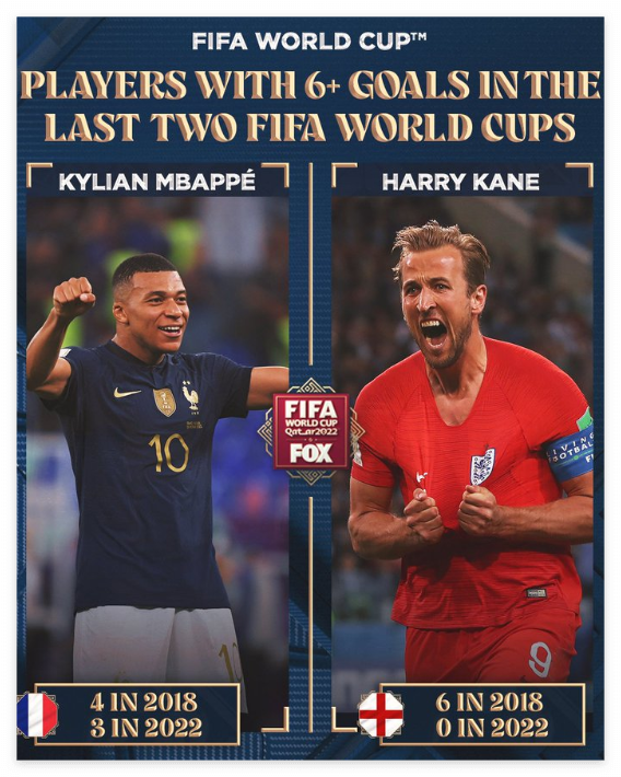 음바페는 2번의 월드컵에서 9골, 해리케인은 2번의 월드컵에서 7골을 넣고 있으며, 이번 월드컵은 아직도 순항 중입니다.