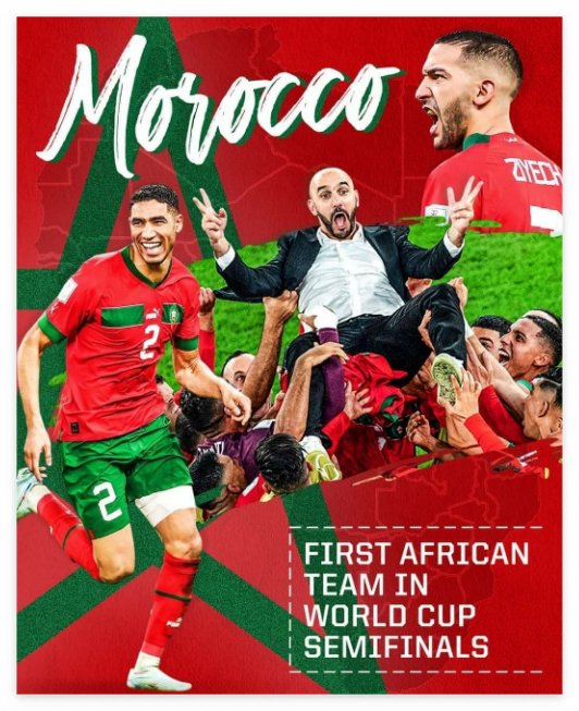 2022년 카타르 월드컵 16강전에서 모로코가 승부차기 끝에 스페인을 꺾더니, 8강전에서는 포르투갈을 1대 0으로 꺾고 4강에 오르는 기염을 토했습니다. 이로서 모로코는 4강에서 이번 월드컵에서 가장 강력한 우승후보 프랑스를 만나게 되었습니다.