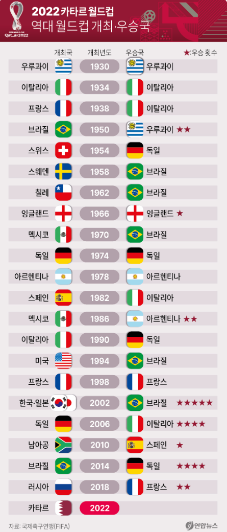 ▣ 역대 월드컵 개최국 및 우승국