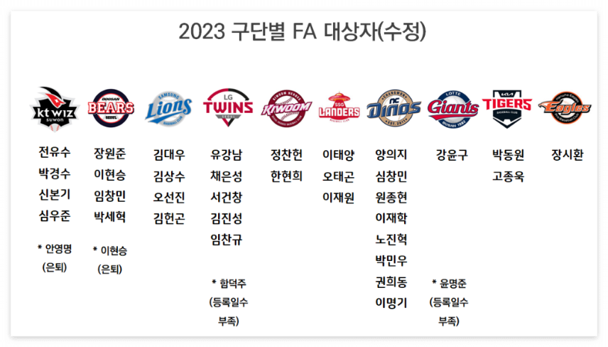 ▣ 2023년 주요 FA 선수